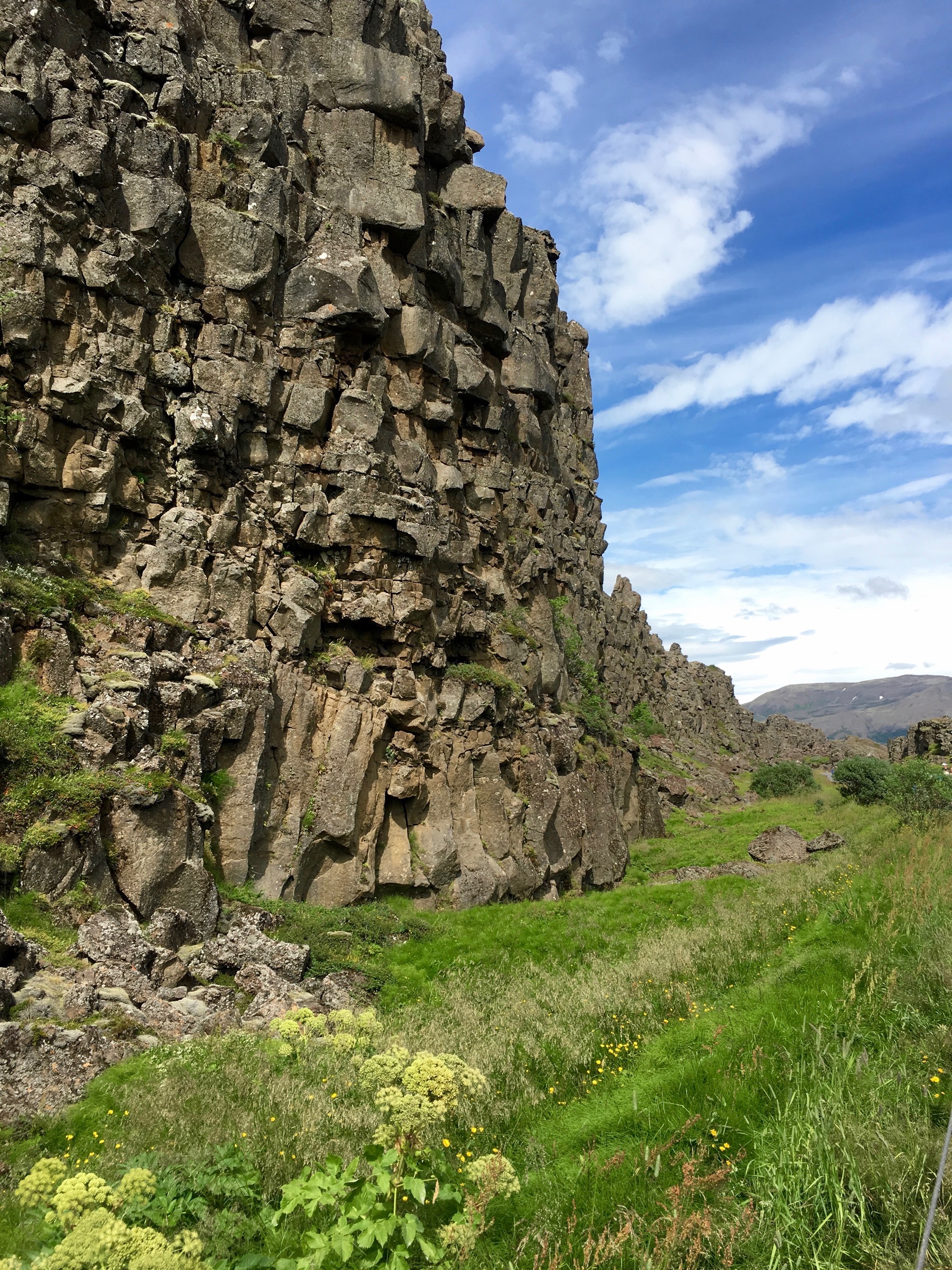 Þingvellir est le site historique du parlement islandais, fondé en 930, sur l'emplacement de la faille qui sépare les plaques tectoniques nord-américaine et eurasienne. Aujourd'hui, le parlement se réunit à Rekjavik et Þingvellir est un parc national aux allures des Disneyland avec ses allées goudronnées bordées de main courante et ses parking tous les 500 mètres.